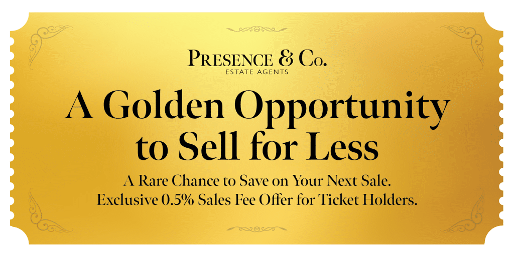 The Golden Ticket offer gives recipients a rare opportunity to reduce their selling costs without sacrificing service, local expertise or marketing quality. It is a deliberate move by Presence & Co. to challenge traditional estate agency pricing while reinforcing its commitment to practical, client‑first advice.